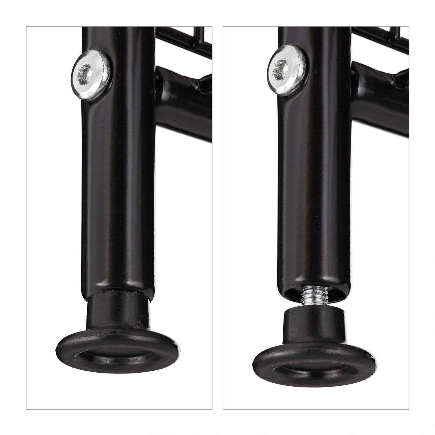 - Protect floors with adjustable plastic feet that stabilize the shelf.
