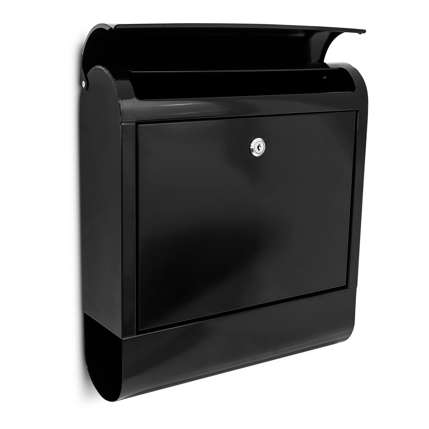 Modern mailbox with magazine compartment enhances curb appeal while protecting mail from weather. Its sleek black design and round roof ensure your letters and magazines stay dry and secure.