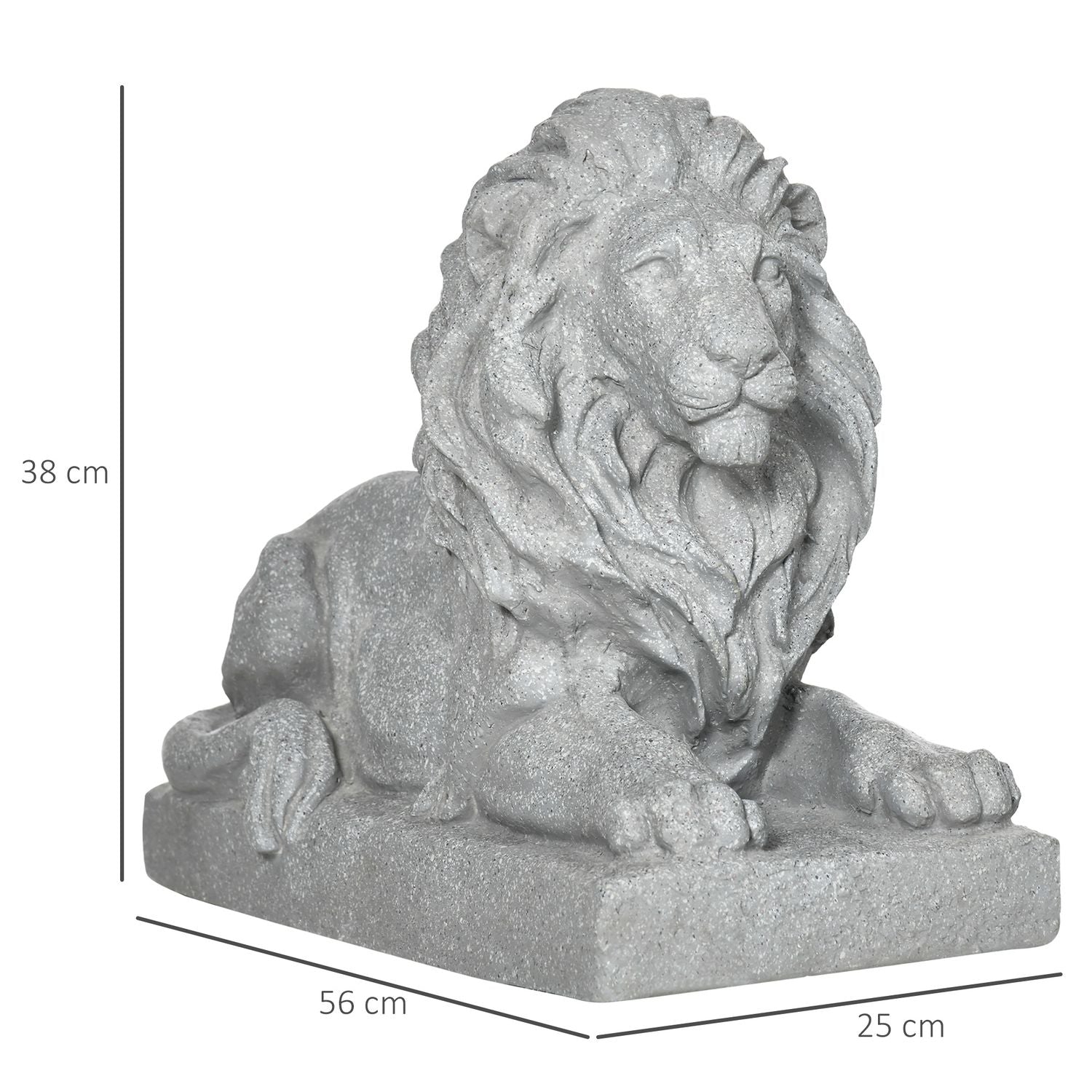 Transform your outdoor space into a royal retreat with this stunning lion garden statue. Crafted from durable magnesium oxide, this exquisitely detailed figure captures the lion's majestic presence and lifelike expression while being completely weatherproof, promising years of charm for your garden, porch or patio.