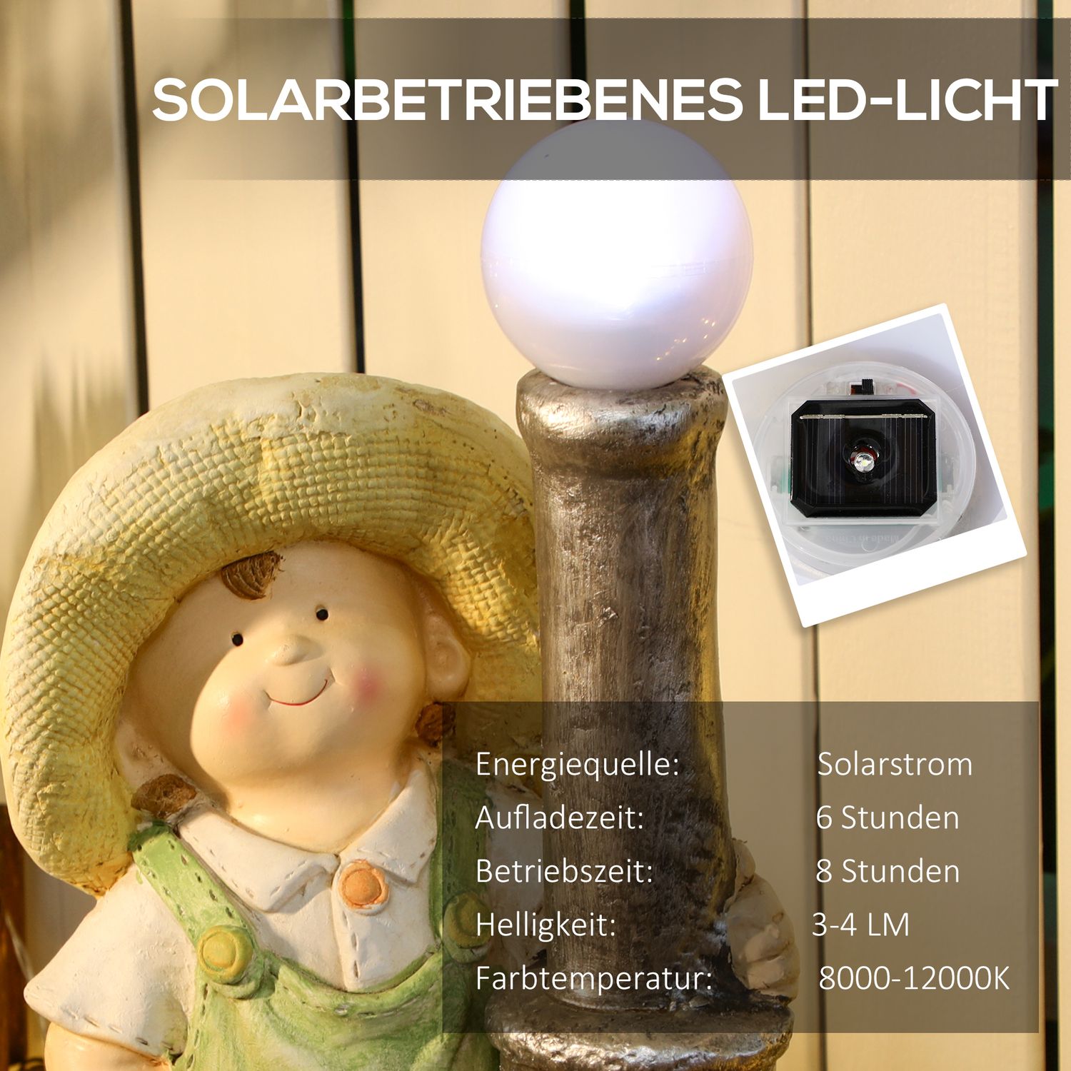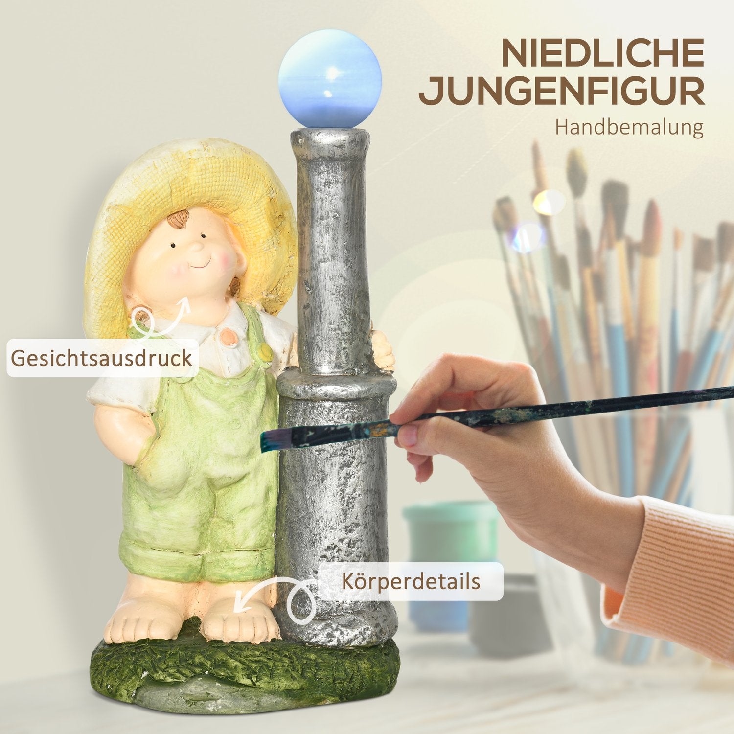 Give your garden joy and character with this delightful garden decoration for boy figures. Made from robust and color-fast magnesium oxide, it withstands weather changes while maintaining its vibrant appearance. The solar-powered LED light charges in just six hours and provides an enchanting glow for up to eight hours – perfect for those cozy evenings outdoors. Make your garden stand out with this charming statue effortlessly – a hint of whimsy and warmth. Increase your space today!