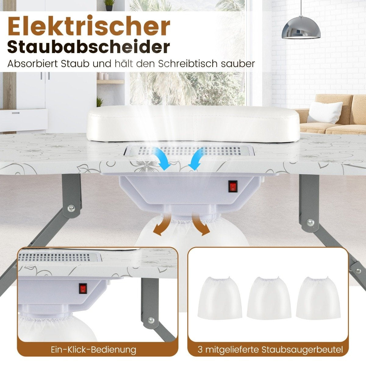 Portable Manicure Table with Built-in Dust Collector and LED Lamp