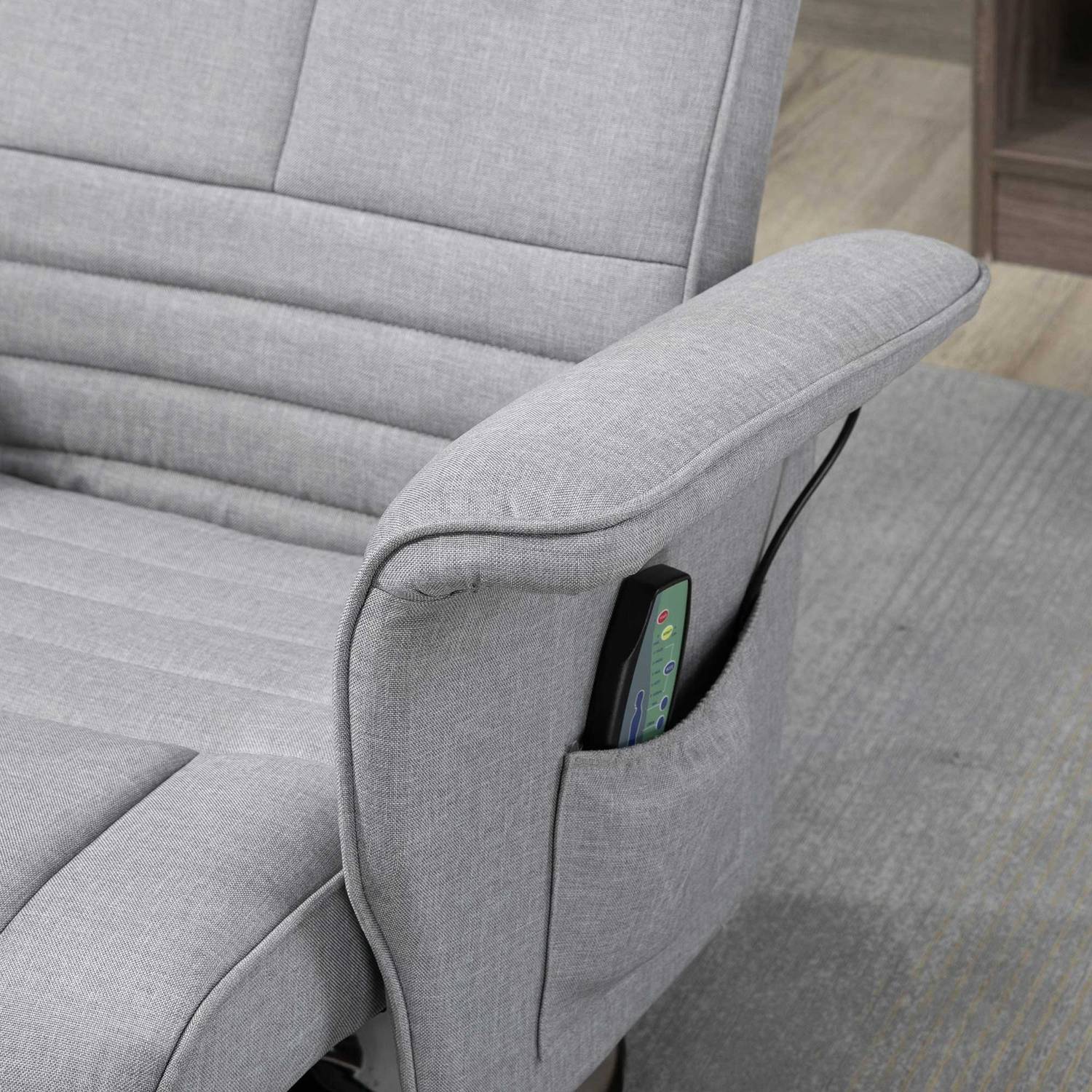 Reclining massage chair with footstool, light gray linen
