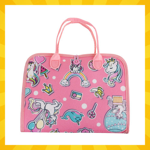 The Montessori Manipulative Board Book is an educational sensory toy designed to boost motor skills and creativity in children aged 3 and up. This compact felt book features a unicorn theme, making it perfect for on-the-go learning and play.