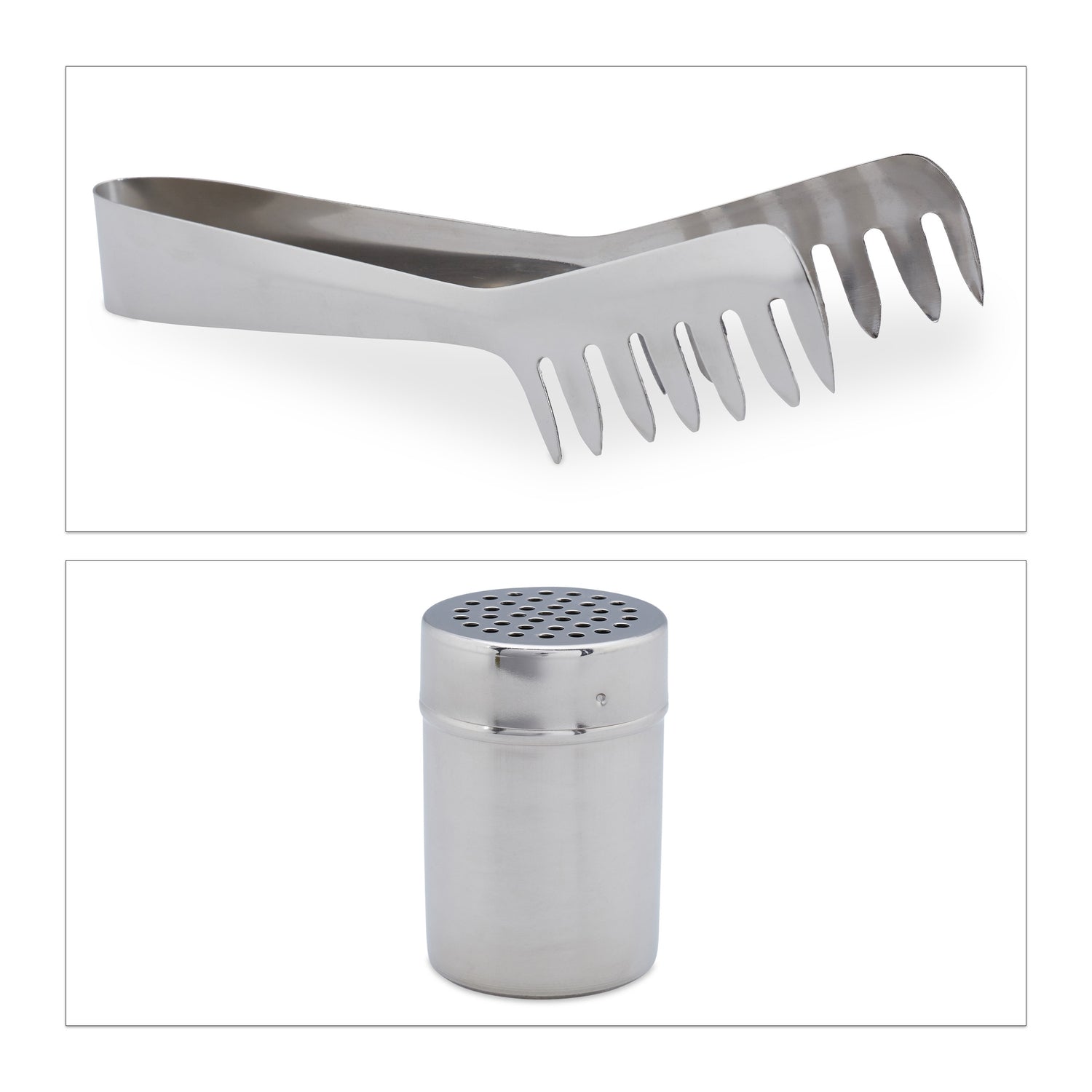 This stainless steel pasta set enhances your cooking experience by providing essential tools for pasta preparation. Designed for pasta lovers, it includes a colander, pasta tongs, and a parmesan mixer.