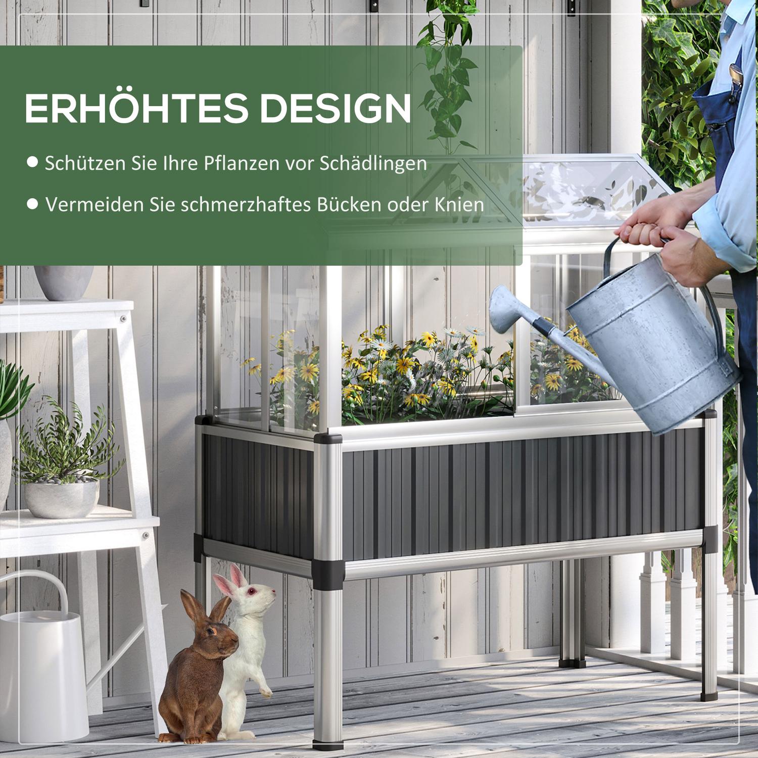 Turn up your gardening game with a raised planter box that includes an integrated greenhouse. This setting not only elevates your plants, but also elevates your gardening experience. Slots for all green thumbs and protect your precious sprouts from weeds, pests and frost. Spacious and flexible, it is perfect for creating a mini-paradise for flowers, herbs or vegetables, ensuring optimal growing conditions all year round.