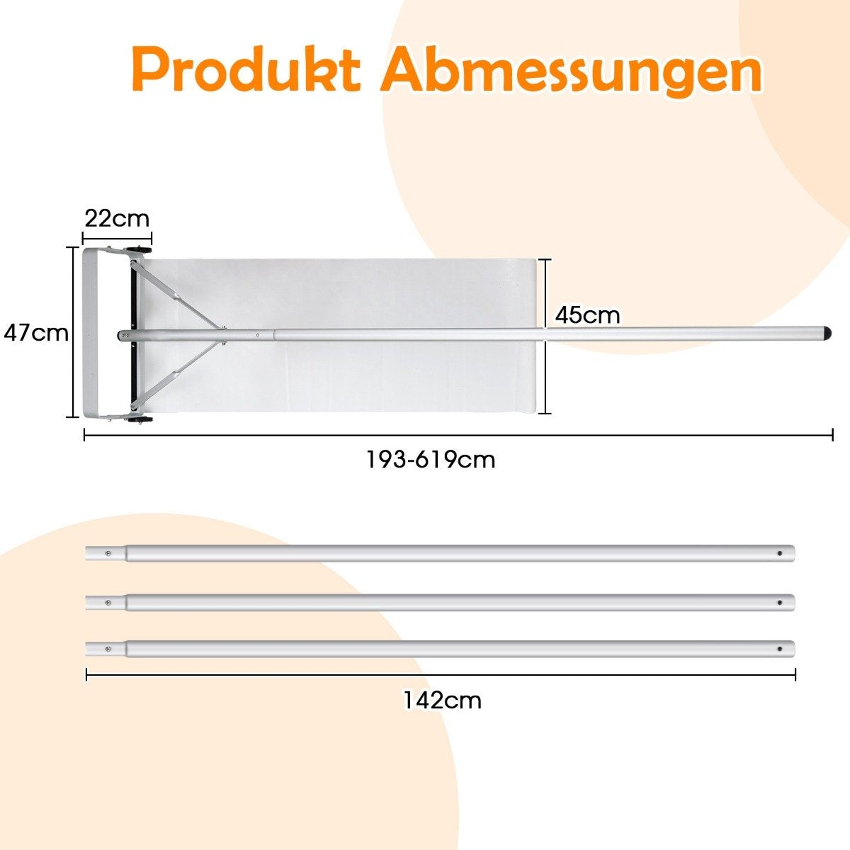 The snow remover's standout feature is its height-adjustable design, which allows you to customize the length from 193 cm to an impressive 619 cm. This flexibility makes it ideal for a variety of roof heights, ensuring that you can clear snow without the need for a ladder. The detachable poles make it easy to install and store, adding to its convenience.