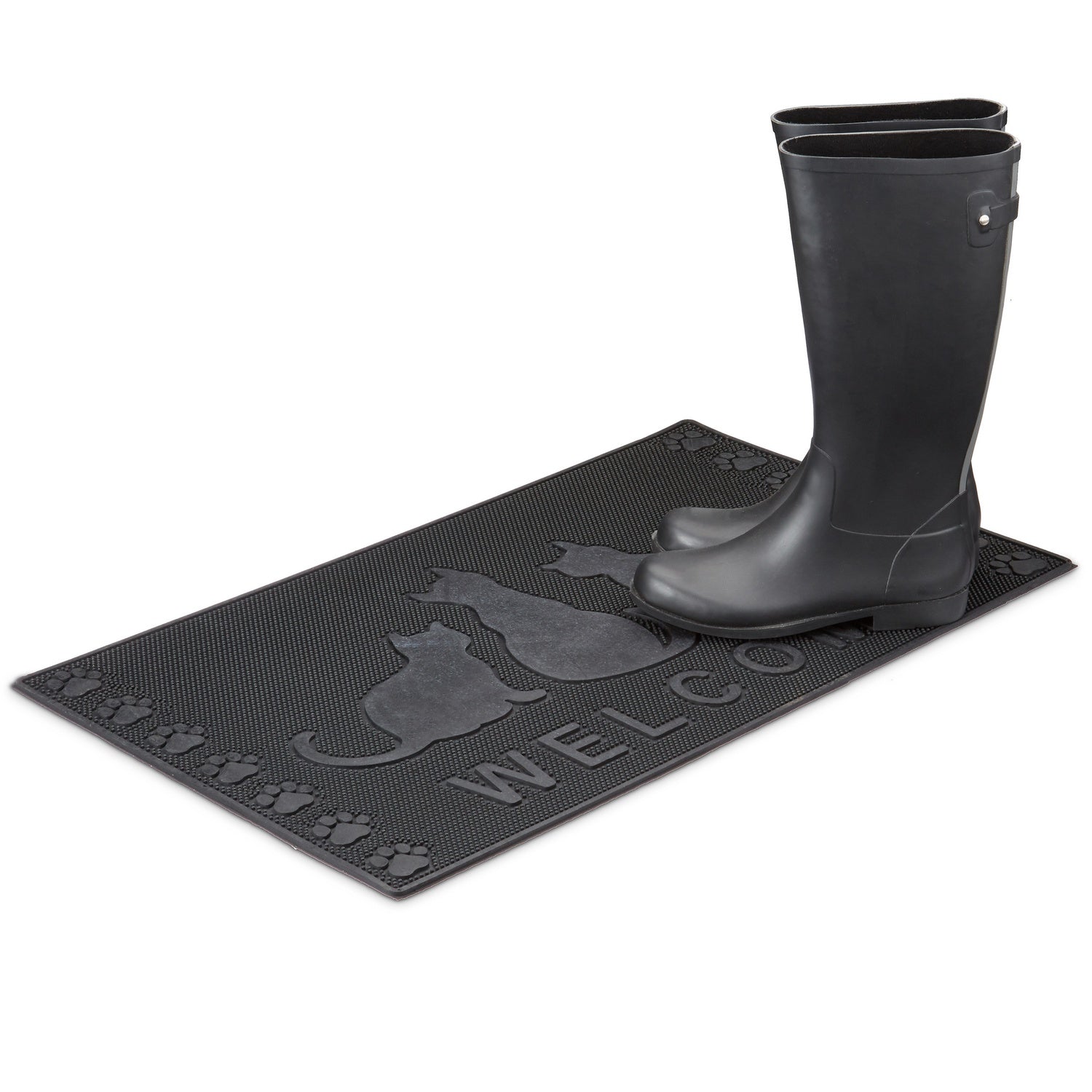 Rubber doormat with cat motif enhances your entrance with style and functionality. This durable, weatherproof mat withstands all seasons, ensuring a welcoming and safe entryway.