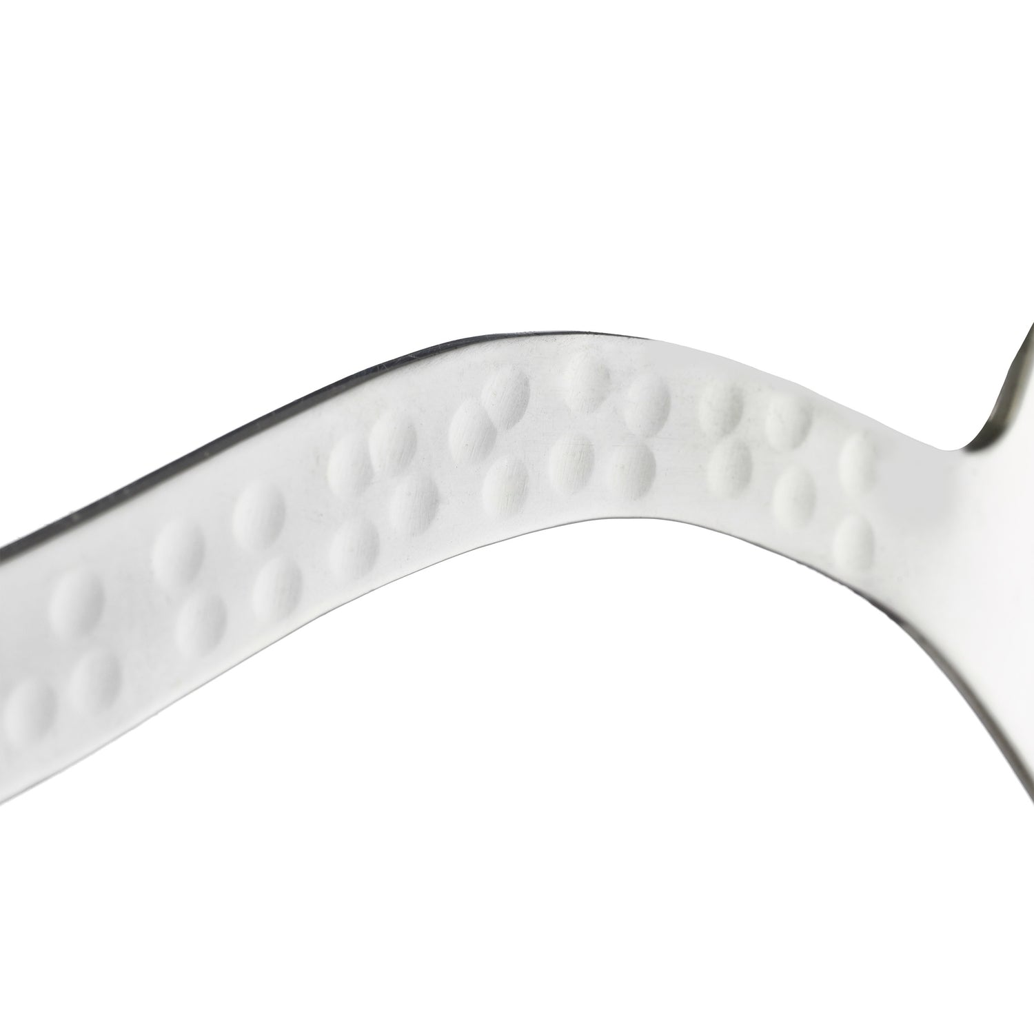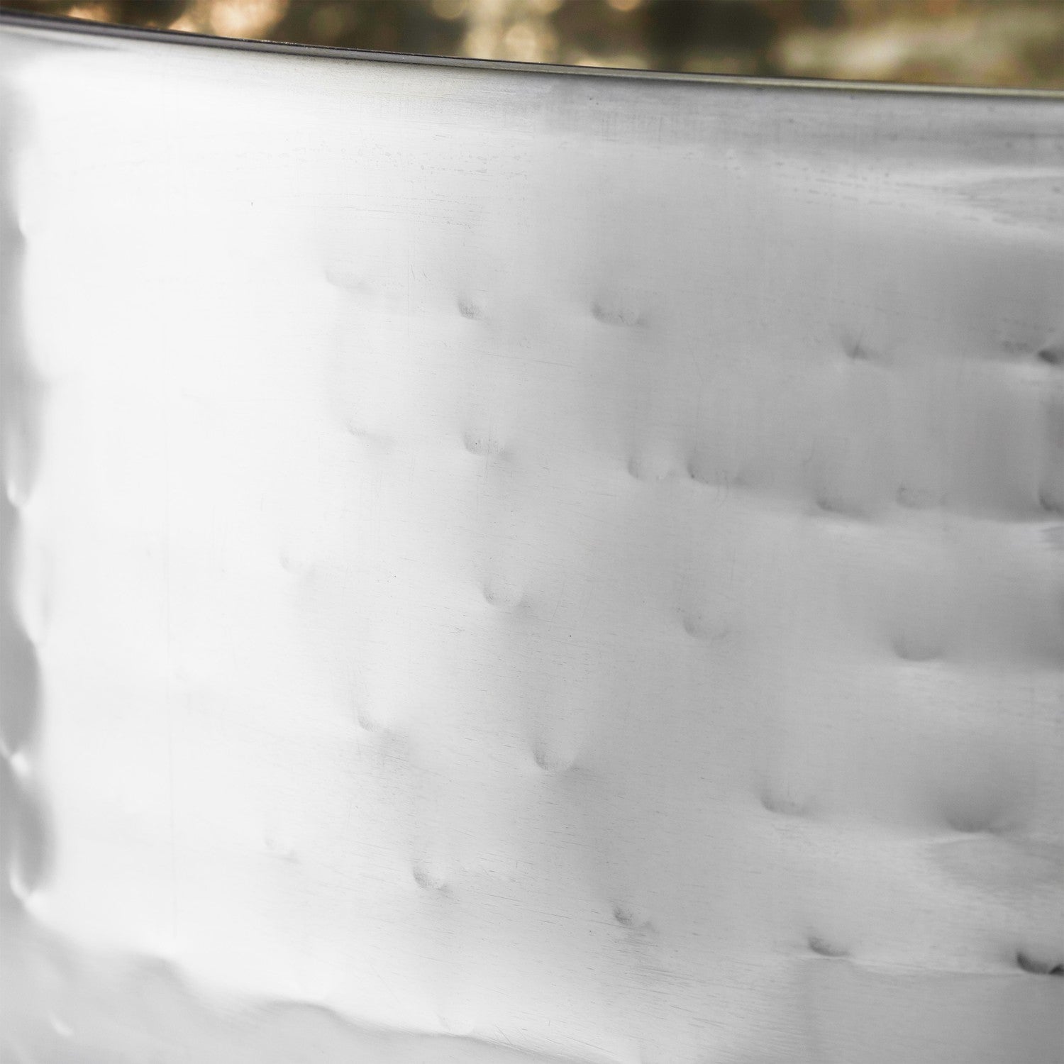 - Enhance your table with a sophisticated hammered stainless steel design.