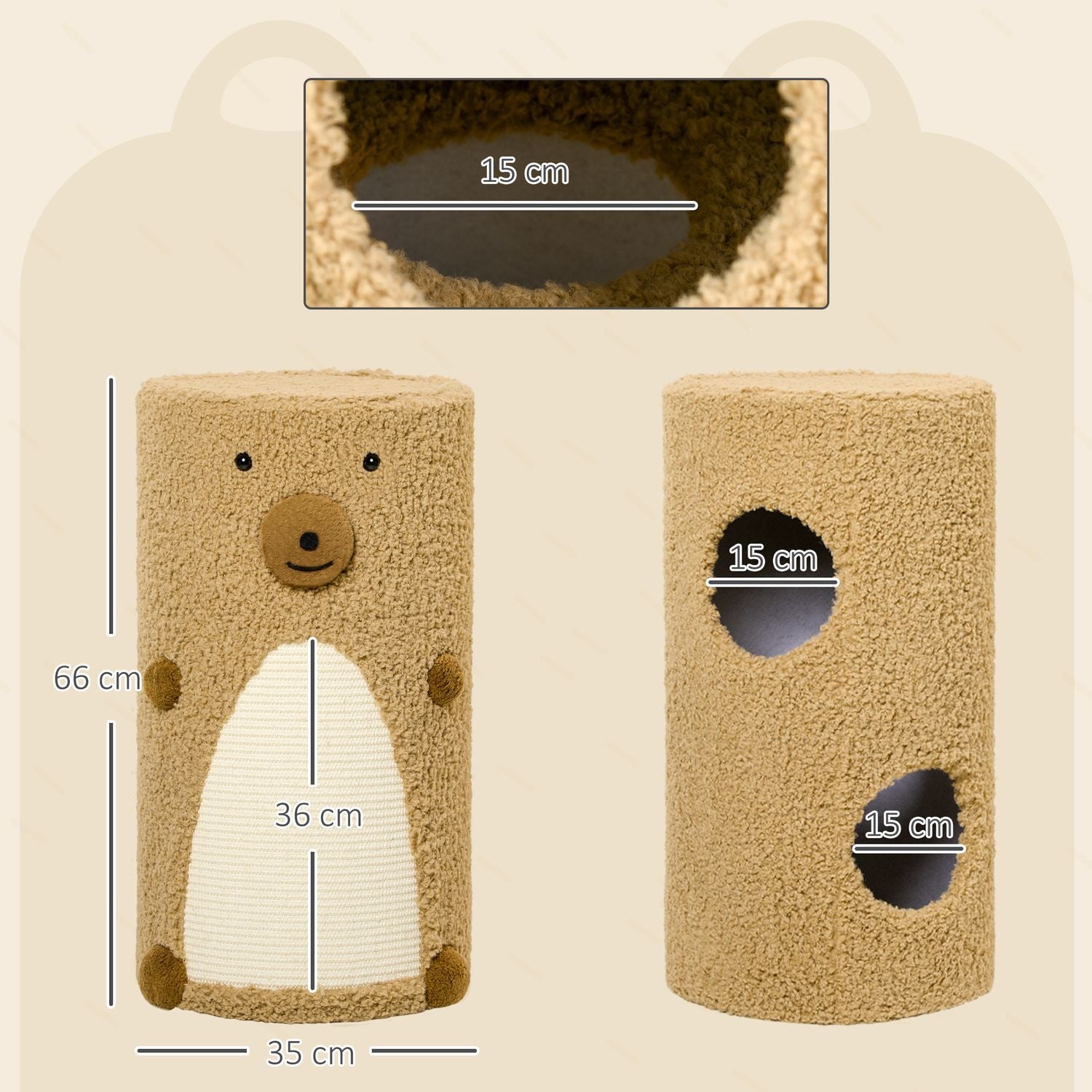 Cat Scratching Tower with caves and board, light brown, 66cm