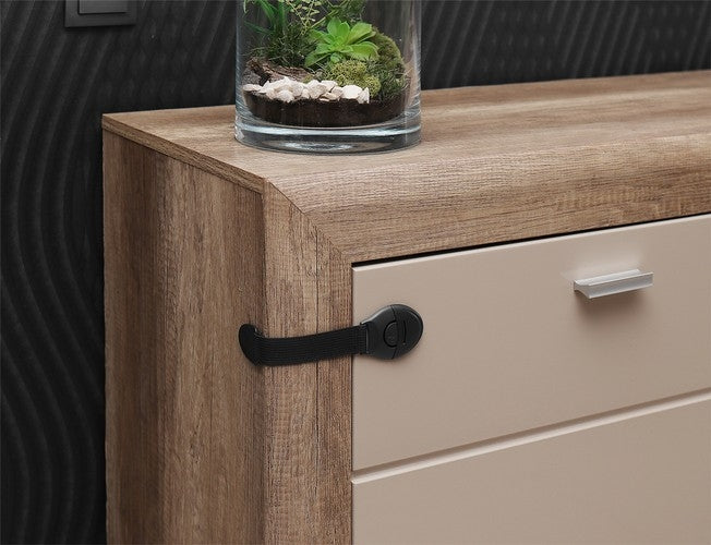 The drawer lock has been designed in such a way as to provide an adult with trouble-free access to the contents of the furniture, without having to remove the protection. Just press the protection in the right place and the clip will open . After removing the necessary accessories from the cabinet / drawer, it is enough to close the drawer lock and it fulfills its function again. The lock for the cabinets is very aesthetic - mounted on bright furniture, it does not attract attention.
