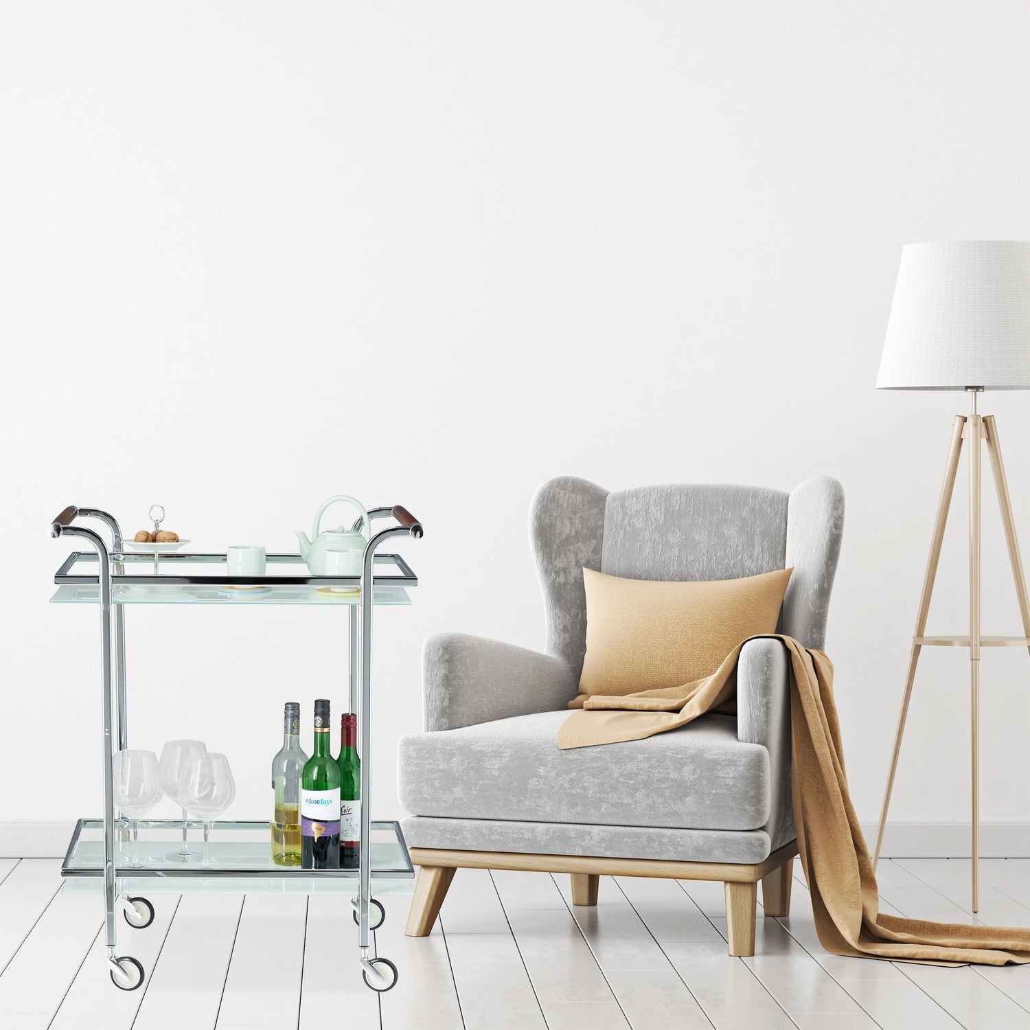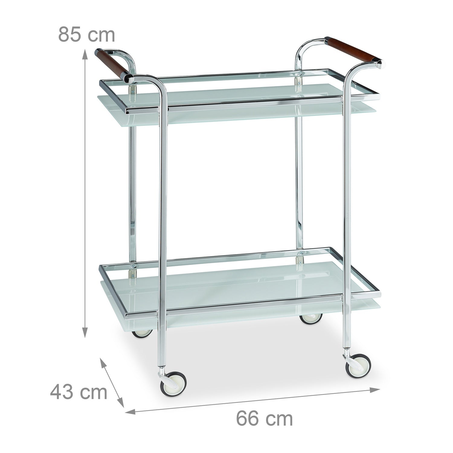 The frosted glass serving trolley enhances your dining experience with style and functionality. Its spacious shelves and raised edges ensure safe transport of food and drinks.