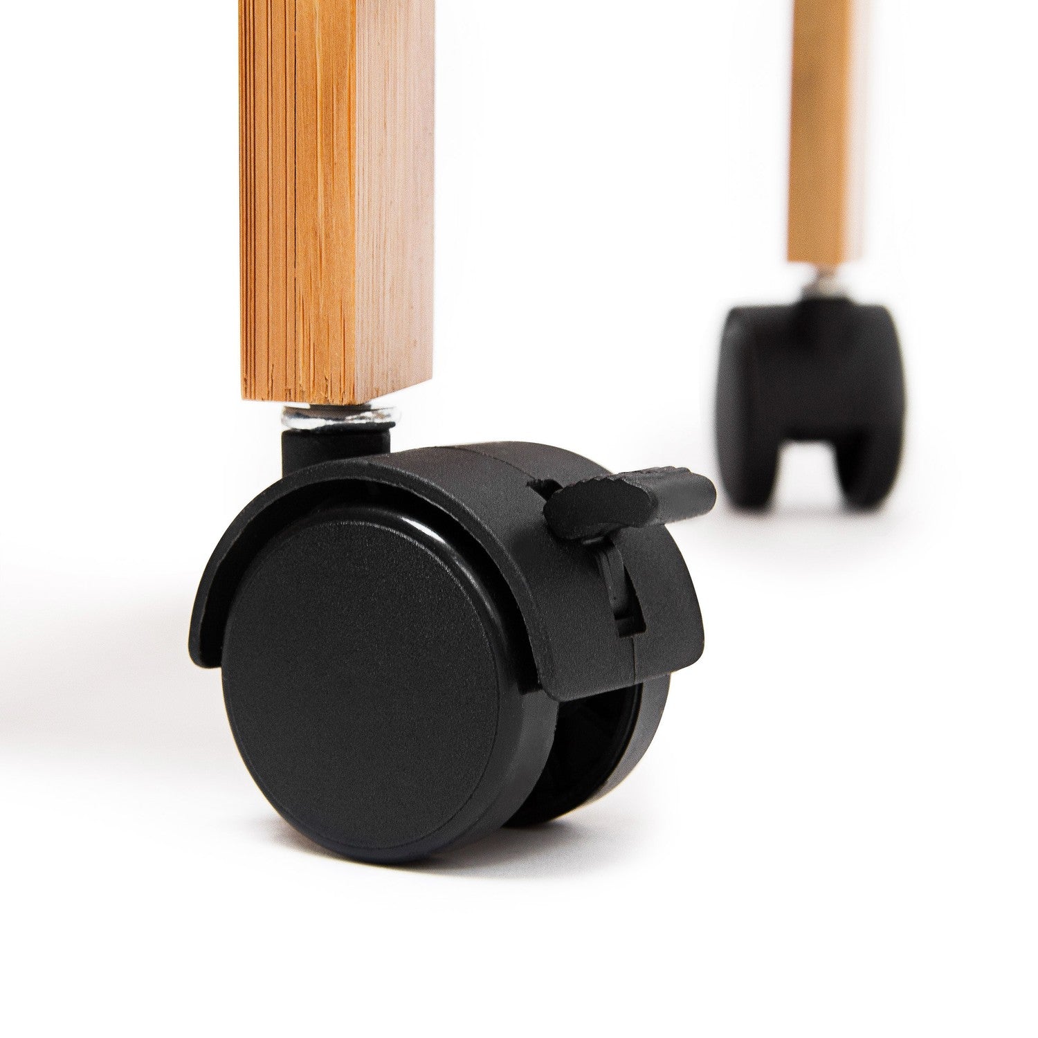 Multifunctional serving trolley crafted from durable bamboo enhances home organization with ease. Effortlessly maneuverable on 4 wheels, it serves as a breakfast tray or chic side table.