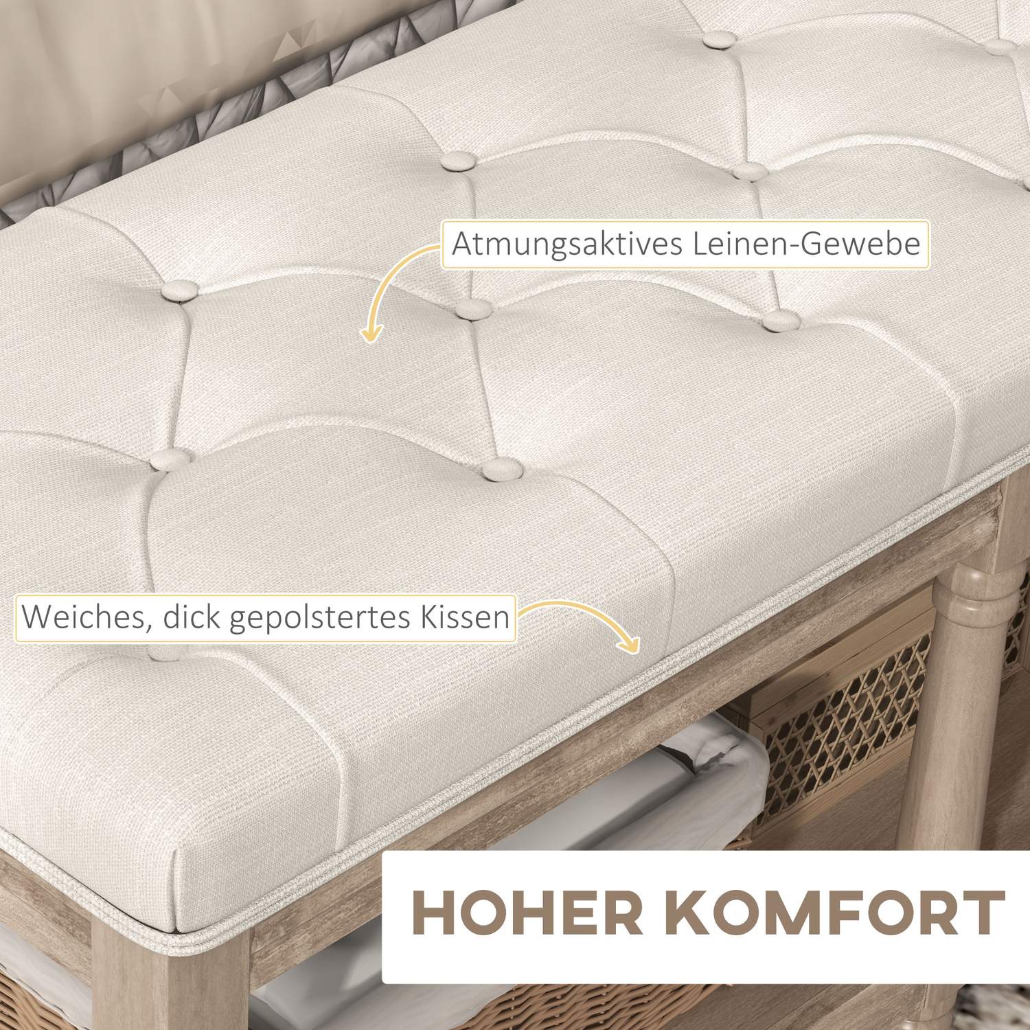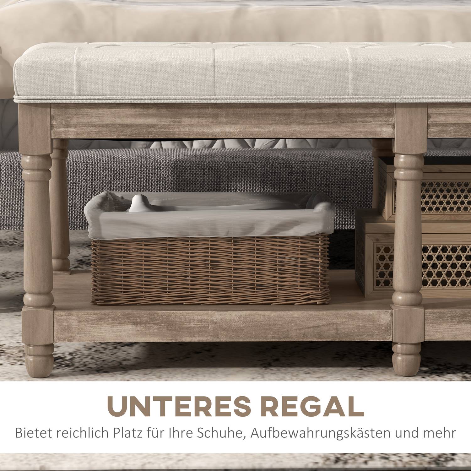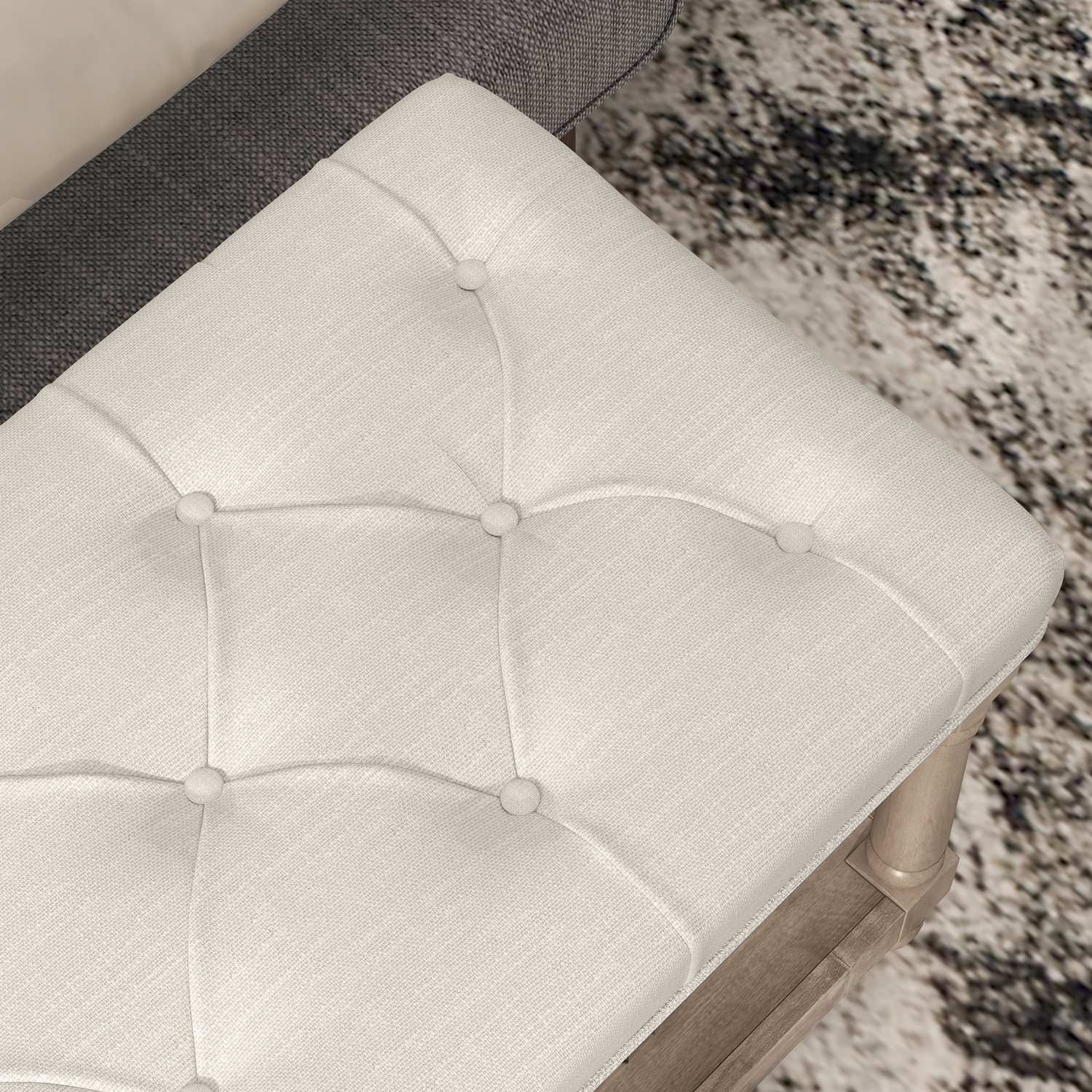 Up your home decor game with this stylish vintage shoe bench. A chic blend of style and functionality, this hallway bench features a breathable fabric cover with eye-catching button stitching and six artistically curved legs that provide stable support. Hidden underneath is plenty of storage for books, toys or blankets to keep your space tidy.