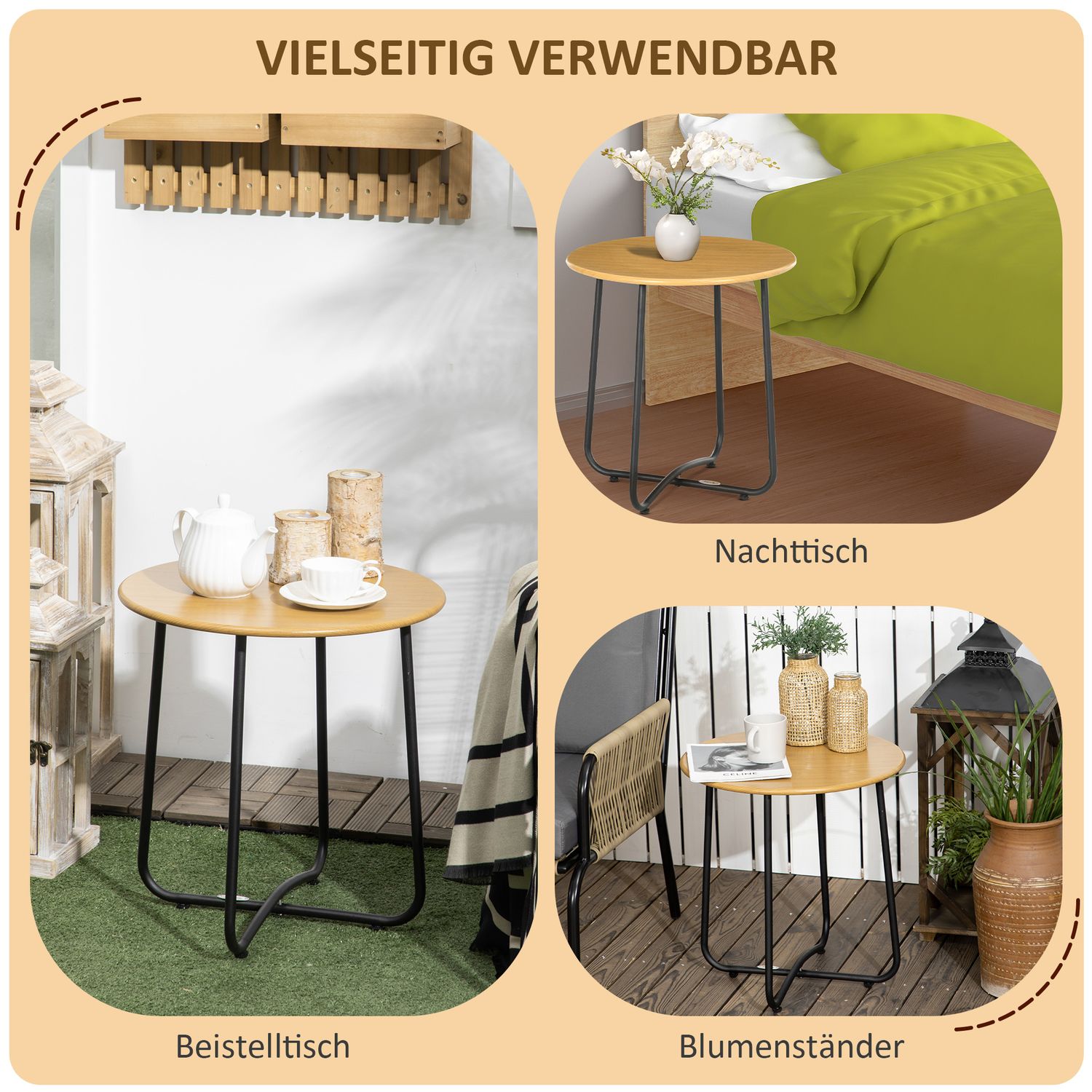 Round side table in wood look - steel plate, 48x48x51cm