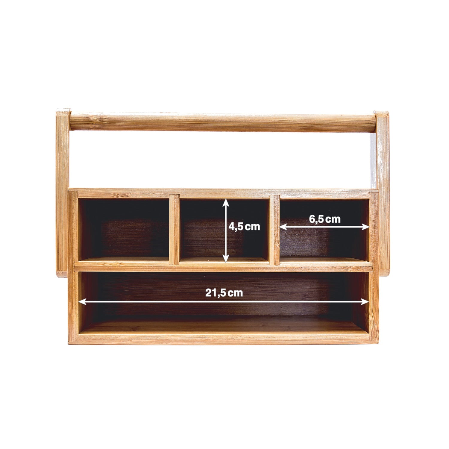 Perfect for home or office, this bamboo organizer adapts to various needs, from holding kitchen condiments to bathroom accessories. Grab yours today for a stylish, organized space.