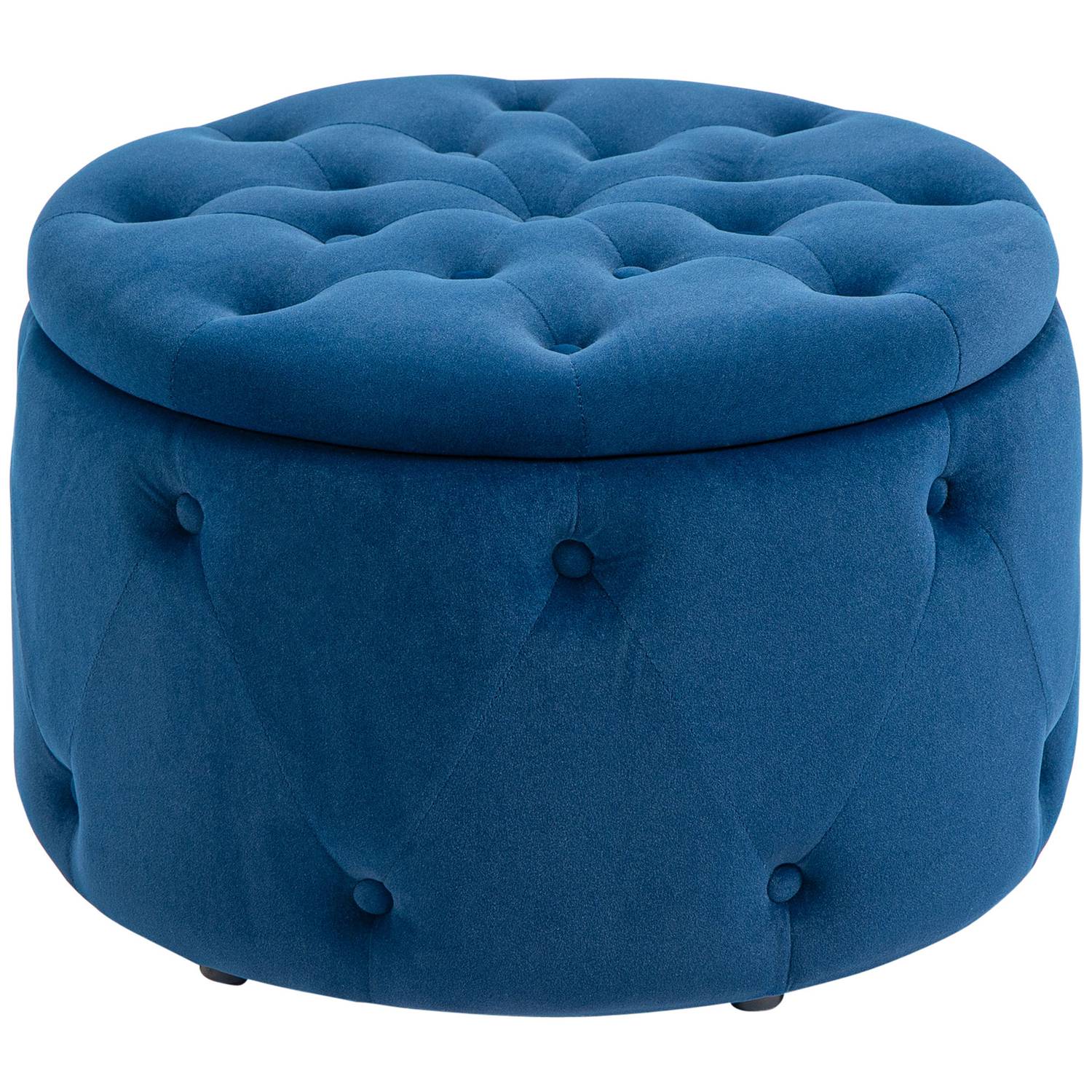 Round Velvet Storage Ottoman - Blue, Ø60 x 40 cm