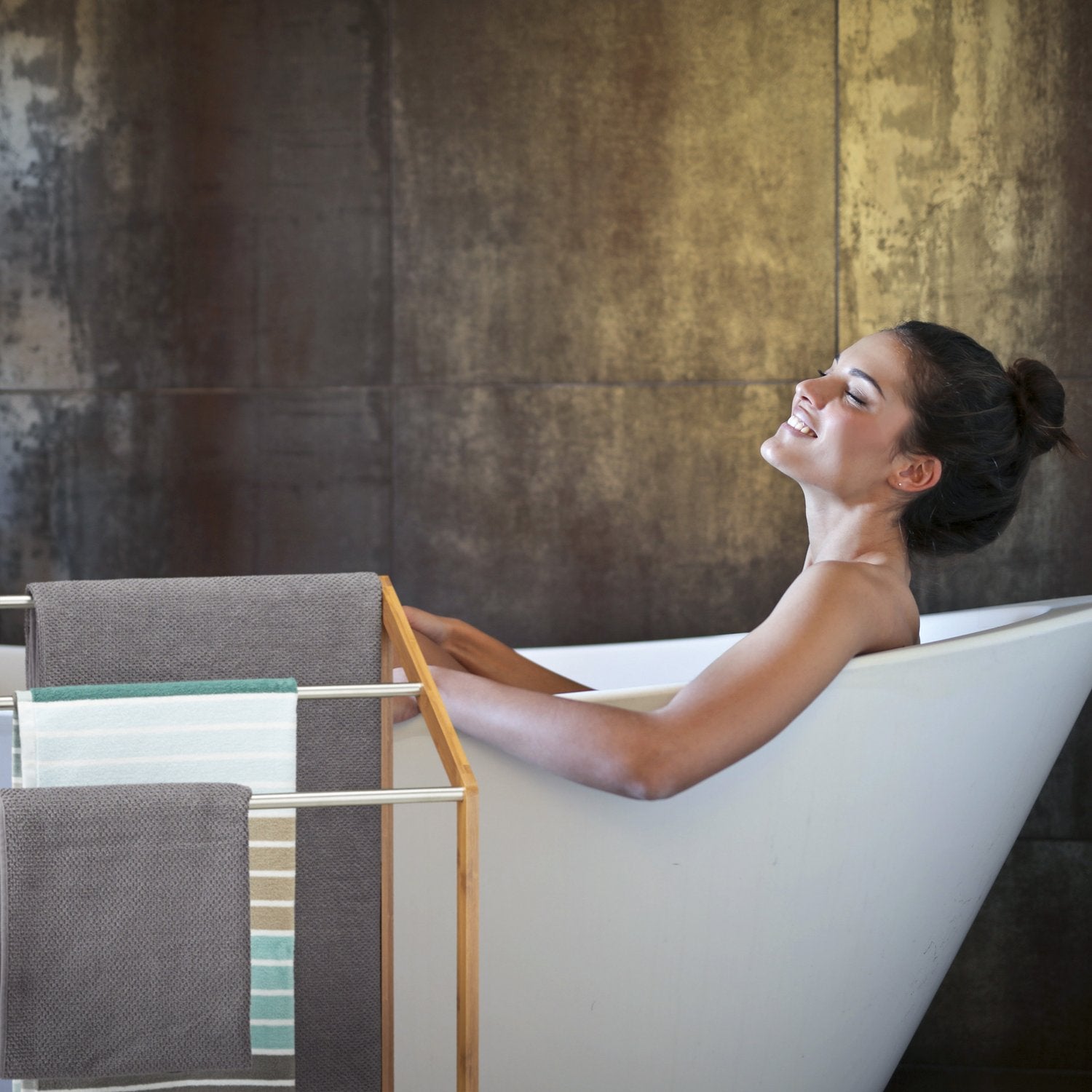 Transform your bathroom into an organized haven with this stylish bamboo towel rack. Its blend of functionality and design makes it a must-have for any modern bathroom. Grab yours today.