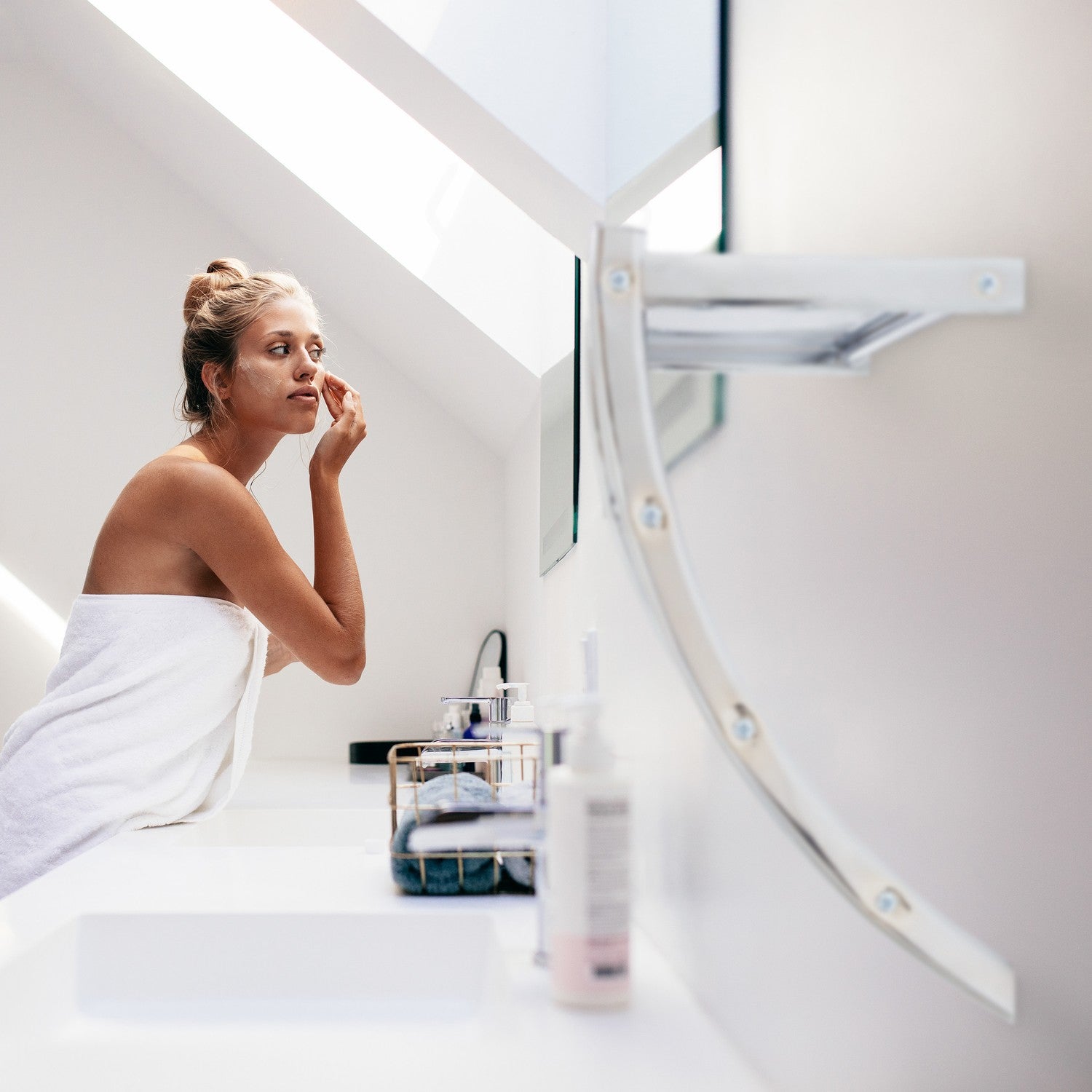 - Delivers extra storage with an integrated shelf for towels or accessories.