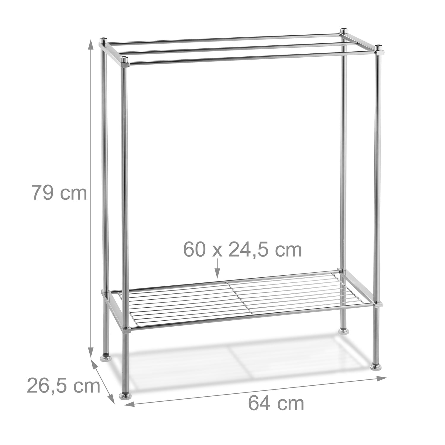 Modern towel rack enhances bathroom organization with its stylish design and practical functionality. Keep towels dry and accessible with three bars and a lower shelf for extra storage.
