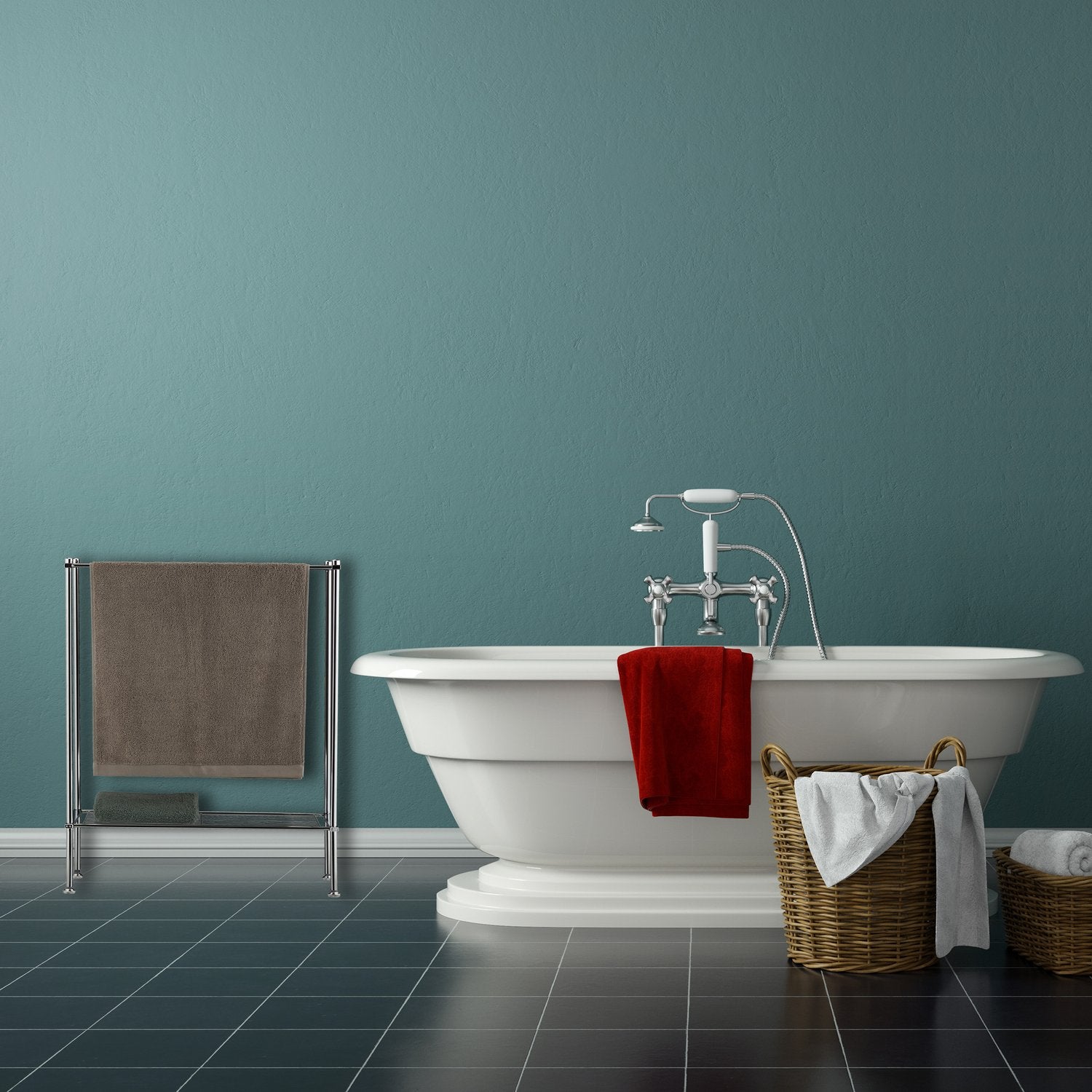 - Maximize space with three bars for hanging towels and bathroom essentials.