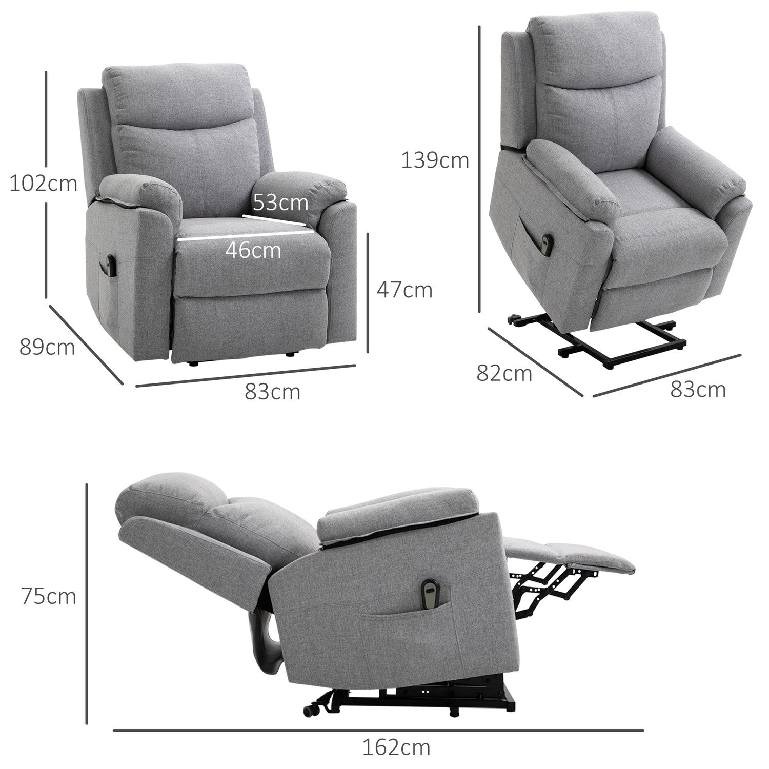 Meet your new favorite place with this electric recliner, designed especially to make life easier for people with mobility problems. This chair smoothly transforms you from standing to a relaxing fully reclined position with the simple push of a button. The comfort is outstanding thanks to its soft padding and linen look upholstery, making every moment soothing and luxurious.