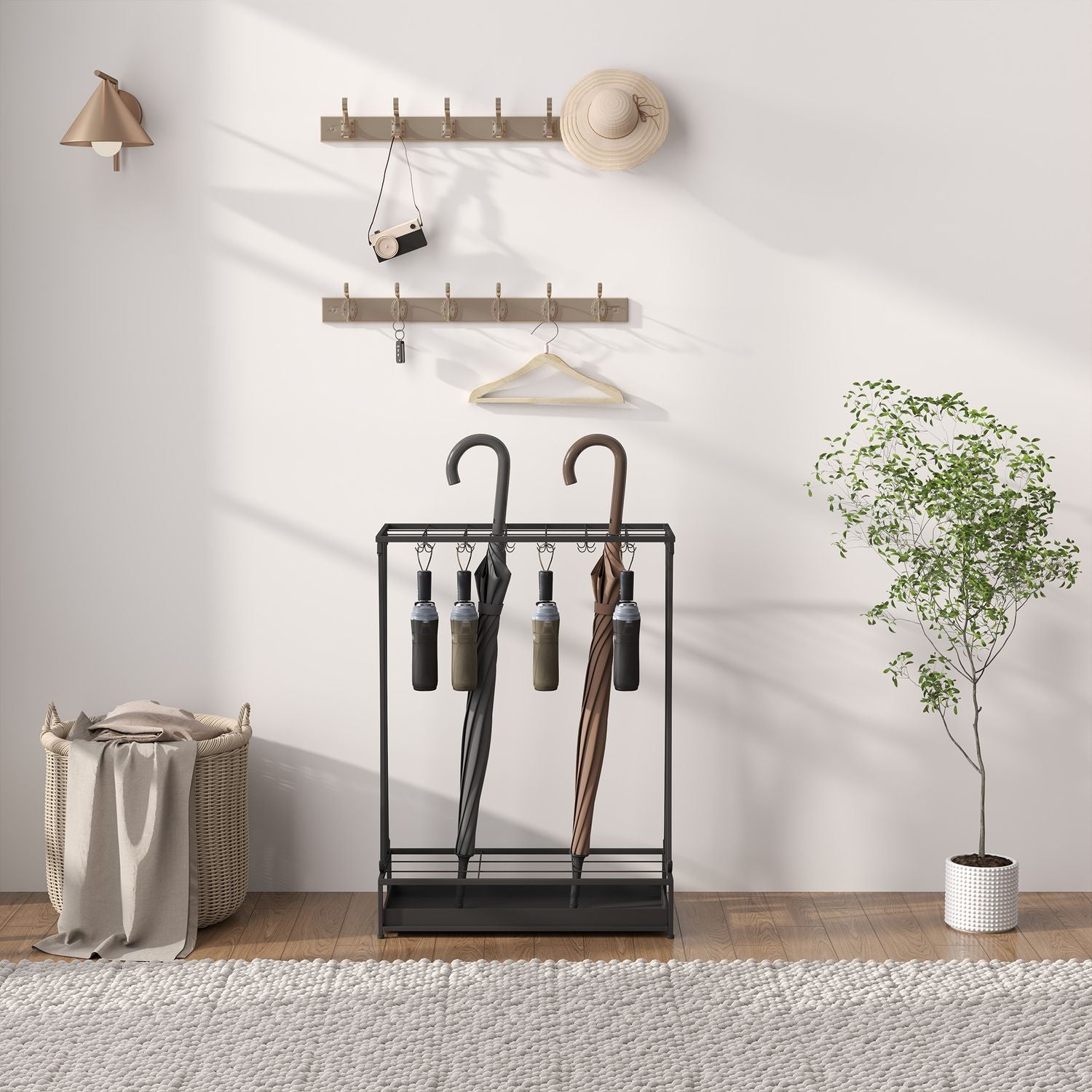 Transform your entryway with this stylish umbrella stand, designed to keep your space neat and organized. With 24 hooks and 21 umbrella compartments, this elegant powder-coated steel frame can hold up to 45 umbrellas, while the integrated drip tray catches rainwater and protects your floors. Its contemporary design effortlessly enhances any home or office decor, making it a must-have for those who balance function with aesthetics.