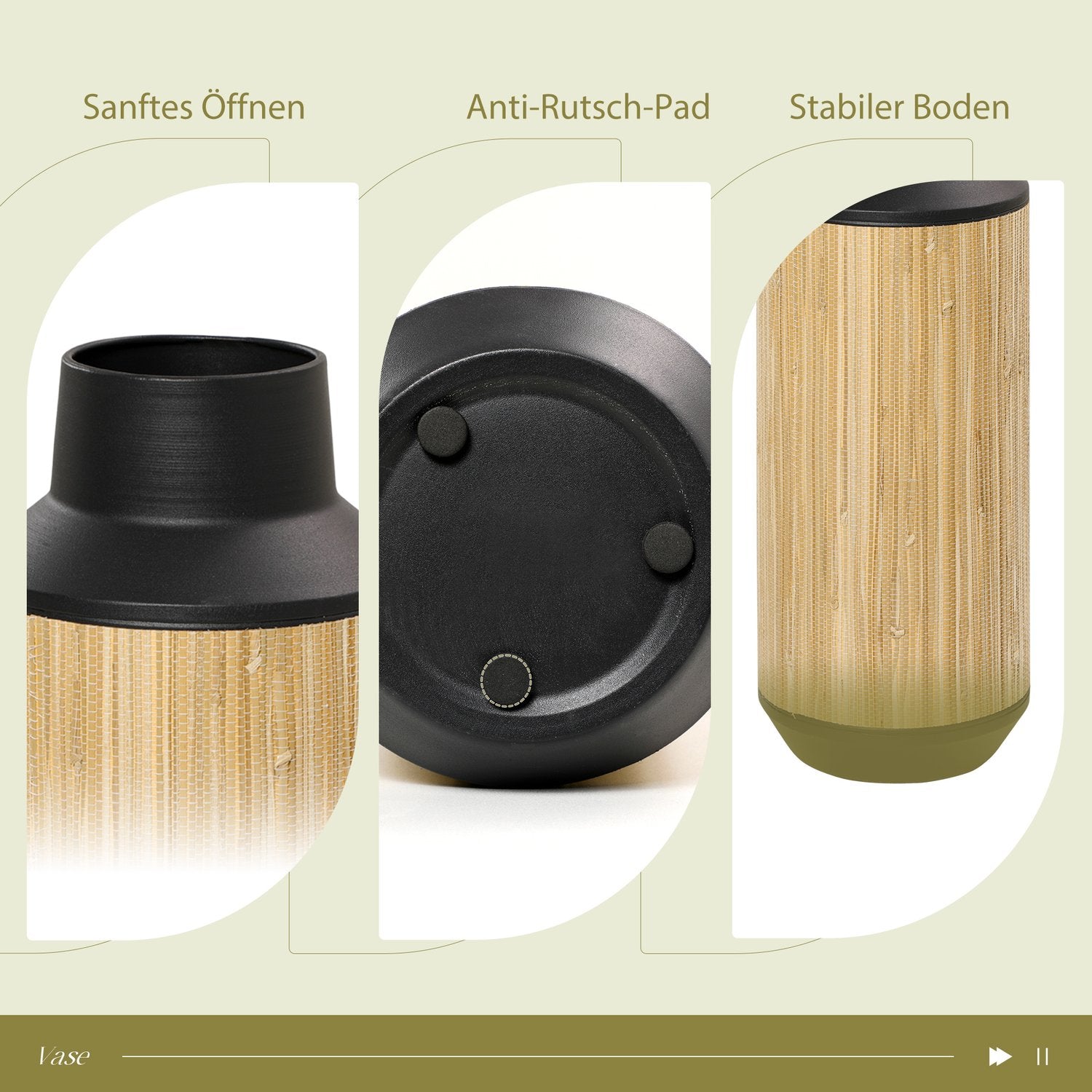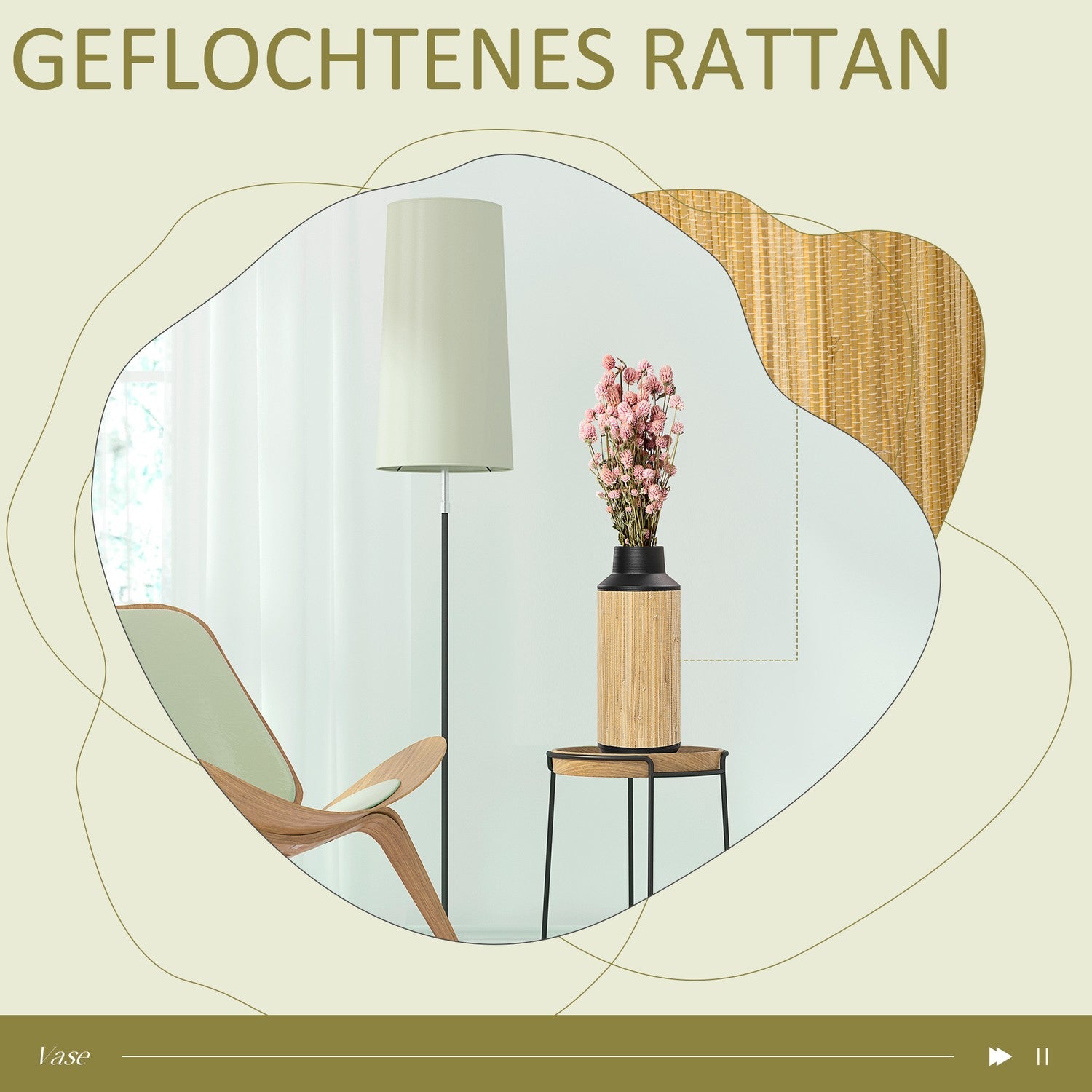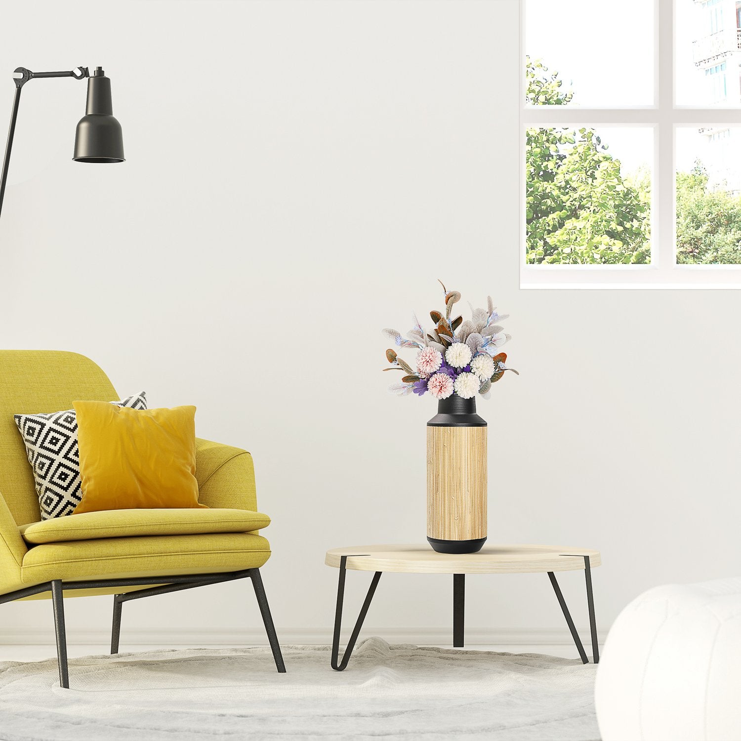 Transform your living room into a warm, inviting oasis with our stunning flower vase. Crafted from a sleek black body and accented with hand-woven pampas rattan, this vase is your go-to for an extra touch of elegance. Use it as a standalone piece or decorate it with dried flowers or artificial plants to effortlessly elevate your home's aesthetic.
