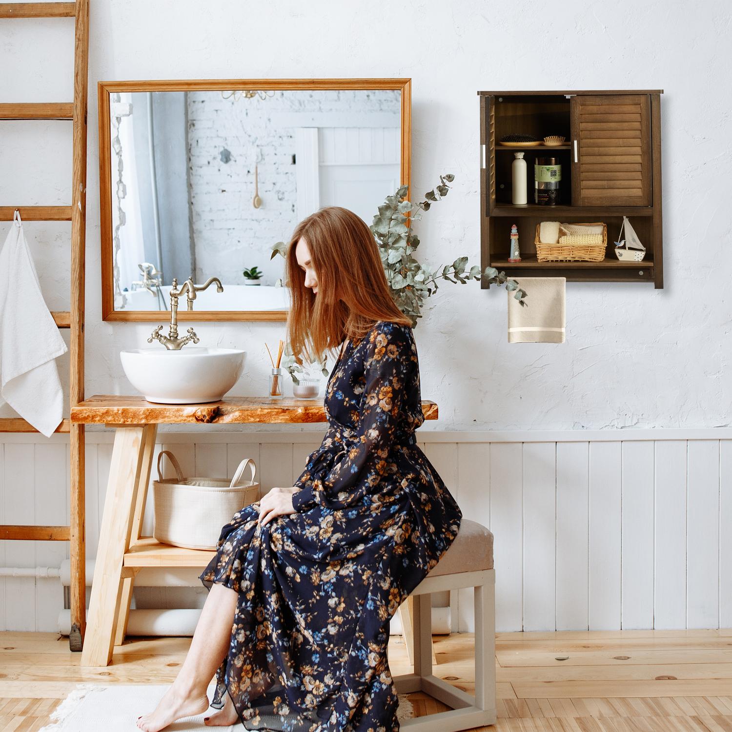 Enhance your bathroom with the bamboo wall cabinet, offering flexible storage and moisture resistance. This elegant cabinet features adjustable shelves and louvered doors for optimal ventilation.