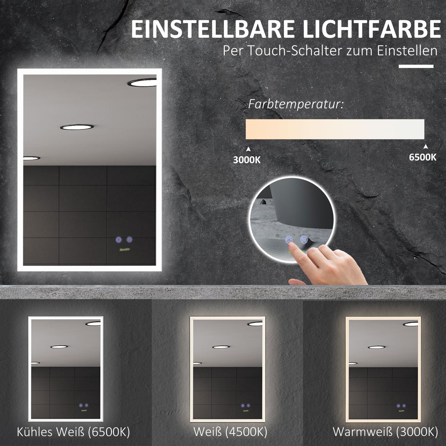 LED bathroom mirror - anti-fog, IP44 waterproof, aluminum