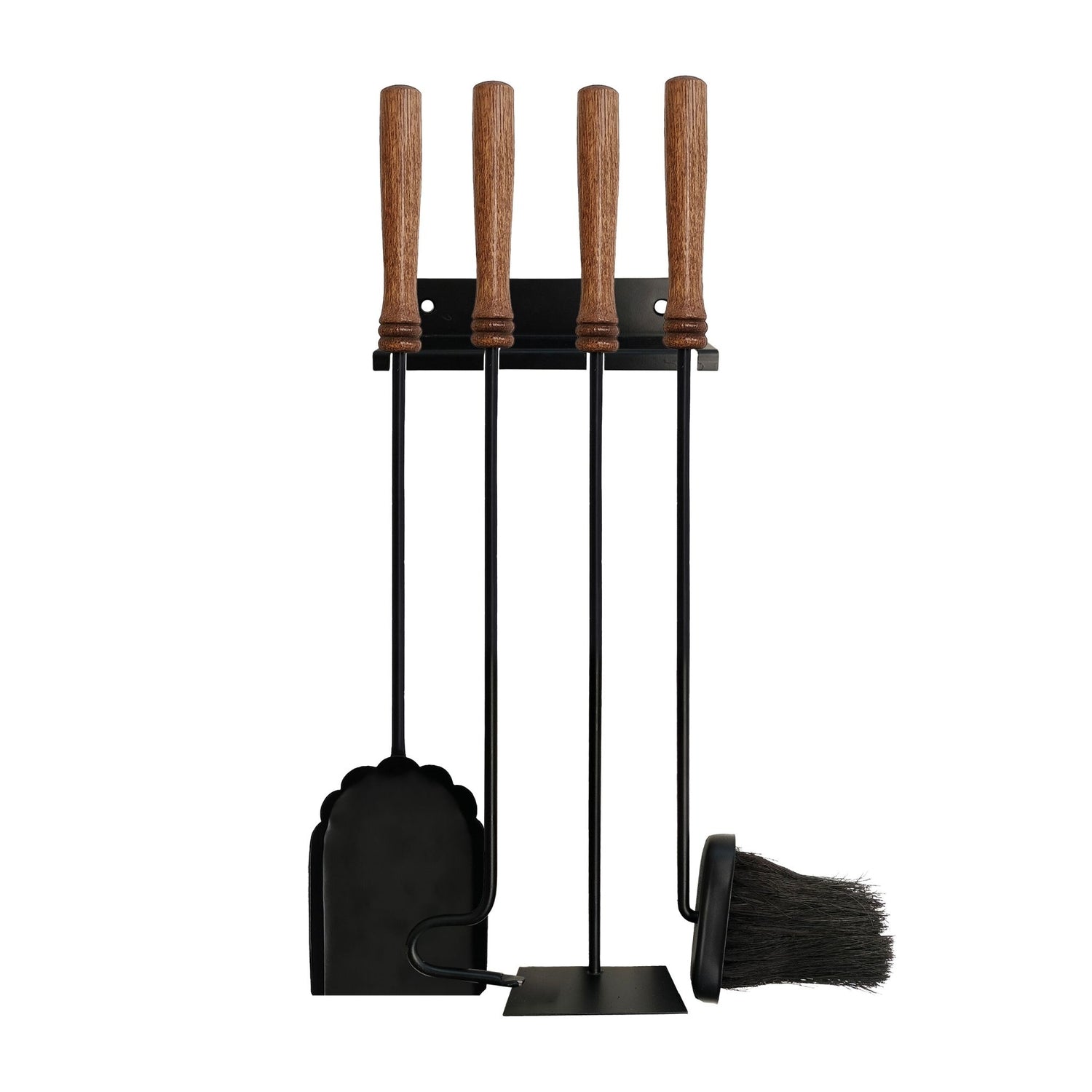 Wall-Mounted Fireplace Tool Set, Steel & Wood, 5-Piece