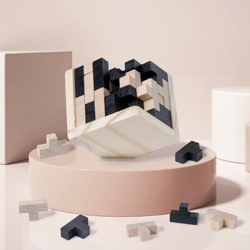 Enhance cognitive skills with this wooden stacking cube, a logic puzzle designed for all ages. Crafted from durable, non-toxic rubber wood, it promotes manual dexterity and problem-solving abilities.
